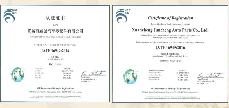 宣城市君誠(chéng)汽車(chē)零部件有限公司是專(zhuān)業(yè)生產(chǎn)各類(lèi)汽車(chē)鉸鏈及限位器的民營(yíng)企業(yè),總投資3000余萬(wàn)元,位于宣城高新技術(shù)產(chǎn)業(yè)開(kāi)發(fā)區(qū),緊鄰宣廣、宣蕪高速公路,地理位置優(yōu)越,交通便捷。是“國(guó)家高新技術(shù)企業(yè)、知識(shí)產(chǎn)權(quán)貫標(biāo)企業(yè)、安徽省商標(biāo)示范企業(yè)、安徽省科技型企業(yè)”,已獲得國(guó)家發(fā)明專(zhuān)利18項(xiàng),實(shí)用新型發(fā)明專(zhuān)利4項(xiàng)。主要從事各類(lèi)汽車(chē)門(mén)鉸鏈及限位器的設(shè)計(jì)、研發(fā)、生產(chǎn)、和銷(xiāo)售,具有專(zhuān)業(yè)的合作團(tuán)隊(duì)。自2015年正式生產(chǎn)至今,已形成一整套完整的生產(chǎn)、質(zhì)量管理體系。并已通過(guò)國(guó)家強(qiáng)制性產(chǎn)品認(rèn)證“3C”體系認(rèn)證及IATF16949國(guó)際質(zhì)量體系認(rèn)證。 在生產(chǎn)設(shè)備上,公司擁... 【查看詳細(xì)】